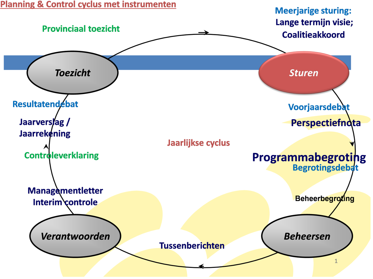 Onderstaand wordt nader ingegaan op de vier hoofdelementen van de begrotingscyclus: sturen, beheersen, verantwoorden en toezicht.