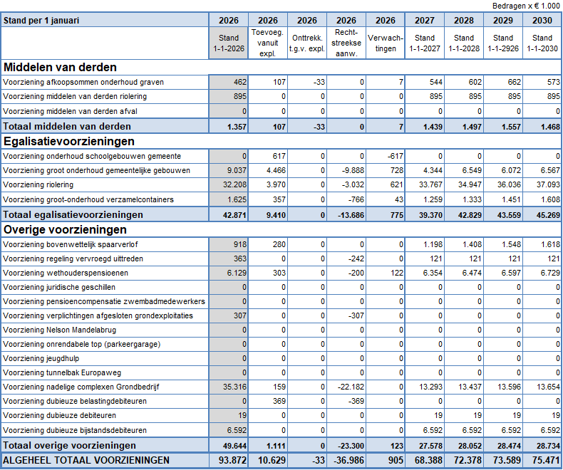 Overzicht algemene dekkingsmiddelen en onvoorzien
