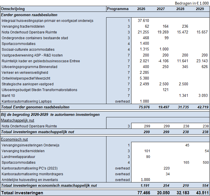 Overzicht algemene dekkingsmiddelen en onvoorzien