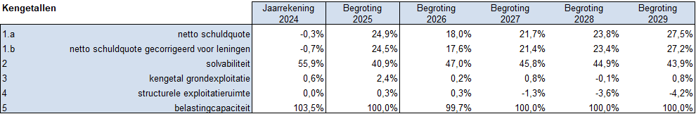 De eerste vier kengetallen staan in relatie met financiële risico’s met een lange termijn karakter. De laatste twee kengetallen geven aan in hoeverre ruimte in de exploitatie bestaat om de financiële lange termijn risico’s af te kunnen dekken.