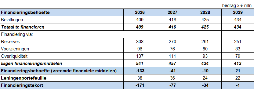 Onder liquiditeitsrisico wordt verstaan het tegelijkertijd innemen van posities geleend en uitgeleend geld. Vanuit de doelstelling van de treasury worden, binnen de kaders van de renterisiconorm van de wet Fido, dubbele posities zoveel mogelijk vermeden. Vanwege de ontvangen Enecogelden (€ 90 mln.) in 2020 en de bestaande leningenportefeuille, is er in 2026 nog steeds sprake van een dubbele positie. Vanwege de komende investeringen met betrekking tot onder andere de Schaalsprong, de binnenstad en de plannen voor wat betreft de bestemming van de Enecogelden, is de verwachting dat deze dubbele positie de komende jaren verdwijnt.
