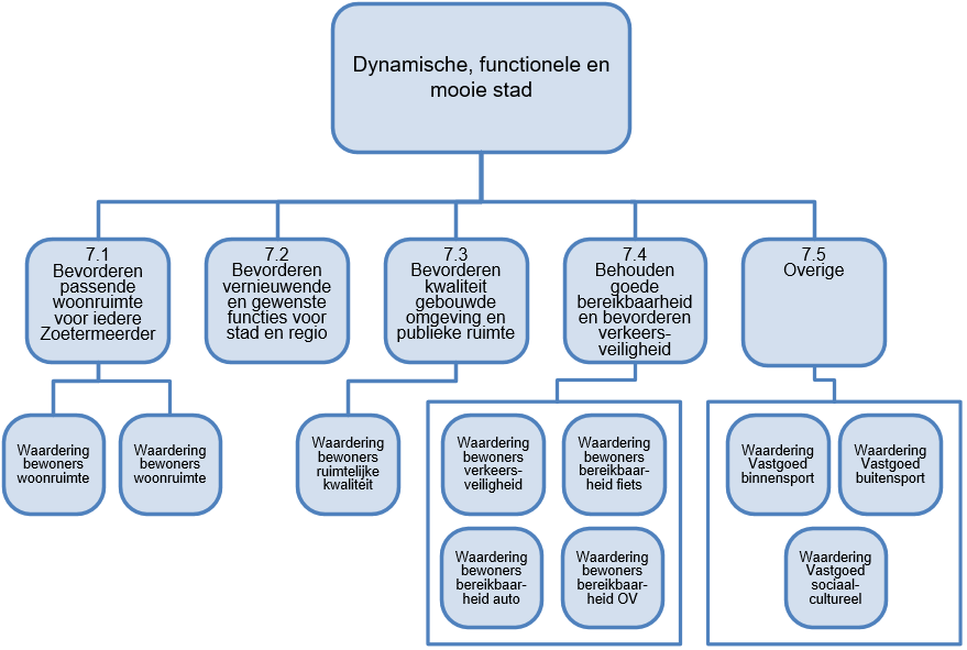 In lijn met de Omgevingsvisie en de Ruimtelijke Strategie Zoetermeer werken we aan nieuwe effect- en prestatie-indicatoren die beter passen bij de doelen van Zoetermeer 2040. Deze nieuwe systematiek is nog in ontwikkeling. Zodra deze gereed is, stellen we passende indicatoren vast die bijdragen aan een transparante en samenhangende sturing op ruimtelijke kwaliteit.